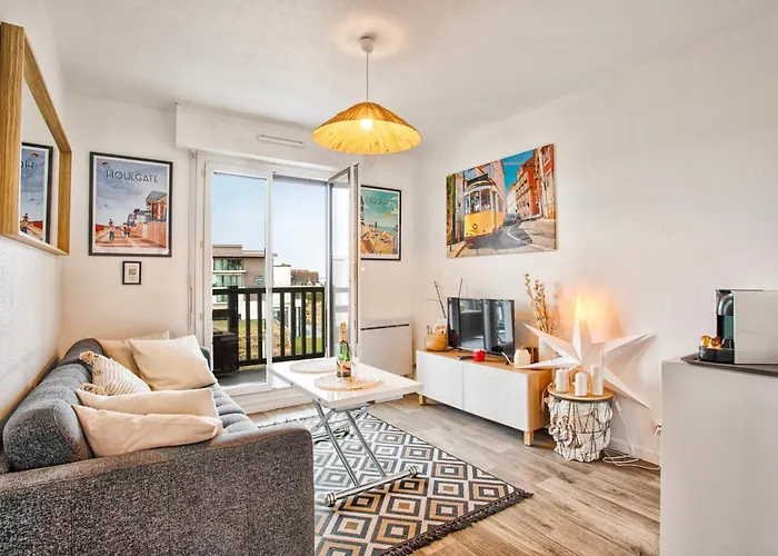 Apartmán Plage Cabourg je 1-ložnicové ubytování s parkováním zdarma, tenisovým kurtem a golfovým hřištěm. Středověké budovy Halles Médiévales je od apartmánu vzdáleno 2.5 km, zatímco Kasino v Cabourgu je vzdáleno 1.1 km.